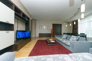 Описание и комплектация Основные атрибуты Wi-FiПлазменный TVКондиционерСпутниковое TVДжакузиЛифт или 1-2 этажСтиральная машинаКредитные карты Тип квартиры: 4х-комнатная Общая площадь: 180 кв.м. Минимум ночей: 3 Этаж: 5/14 Ванные комнаты: 2? Спальных мест: 7 ОПИСАНИЕ Квартира премиум класса. 180 м2 роскоши - шикарная гостиная, 3 спальни, кухня-столовая, 2 санузла, гардеробная. Консьерж работает круглосуточно. В квартире есть 7 спальных мест. В распоряжении гостей: кондиционер, плазменный телевизор, стиральная машина. ПРАВИЛА ДОМА 1. Квартира сдается исключительно для проживания, для празднований дней рождений, корпоративов, вечеринок и прочих мероприятий не сдается. 2. Курить в квартире нельзя, для курения есть специально отведённое место - балкон на этаже. 3. Заезд (при условии, что в квартире нет проживающих) - в любое время, поздний/ранний заезд - за дополнительную плату (23:00-07:00). 4. Выезд - до 12:00 (+/- час). 5. В квартире может проживать только то количество гостей,