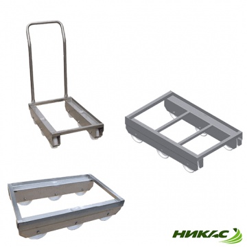 Транспортная тележка для пластиковых ящиков Транспортные тележки предназначены для транспортировки пластиковых ящиков с пищевыми продуктами, размеров 600х400 мм (ЕВРО тип Е1-Е4). Мы изготавливаем одинарные и двойные штабелируемы тележки в стандартном исполнении, а также по индивидуальным запросам. Подробнее о возможных вариантах исполнения -