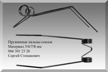 Пружины сжатия (амортизаторная пружина, откидная пружина, аварийная пружина), пружины растяжения (пружина отвальная, пружина натяжная, пружина под вкручиватель), рабочие органы (зуб пружинный, зуб огребания, выравниватель почвы, скребница, граблина, палец пружинный), которые применяются в различных узлах и агрегатах сельскохозяйственной техники: - пружина культиватора; - пружина сеялки; - пружина бороны; - пружинная борона; - пружина пресс-подборщика; - пружина ворошителя; - пружина валкователя; - пружина валкообразователя; - пружина граблей; - пружина жатки; - пружина подборщика; - пружина комбайна; - тракторная пружина.