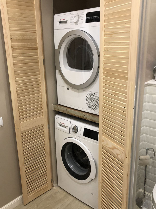 Шкаф для стиральной и сушильной машины, сборка шкафа в ванной, в туалете, из жалюзийных фасадов, закрытые стиральной машины, котлов, труб стояка и прочей коммуникаций, врезка и установка полк в труднодоступных местах, по индивидуальным размерам, замер и сборка кратчайшие сроки всё из натурального дерево
