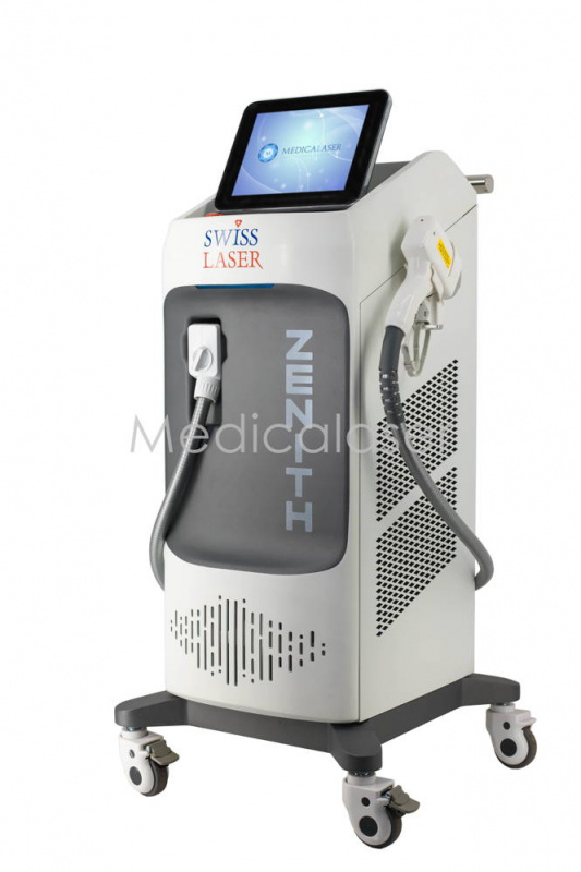Диодный лазер для эпиляции Zenith – новый усовершенствованный аппарат от компании “Medicalaser” категории “PREMIUM”. Это модель 2020 года. Диодный лазер Зенит (Zenith) разработан в стильном металлическом корпусе, что позволит аппарату занять достойное место в салоне красоты или клинике высокого класса. Аппарат Zenith, как новая модель, имеет наиболее современную и надежную систему охлаждения, что позволяет аппарату функционировать длительный период до перерыва в работе и обслуживать значительные потоки клиентов в салоне красоты или клинике. Дополнительные датчики оберегают аппарат от перегрева и выхода его из строя. Аппарат имеет напольную систему установки, но благодаря прочным и маневренным шасси его можно легко передвигать по кабинету или между кабинетами. В аппарате также предусмотрена специальная ручка для более комфортного перемещения. Zenith оснащен большим и ярким сенсорным дисплеем управления с удобным меню, что позволяет легко настроить аппарат во время работы. Хочется отметить длинный соединительный рукав манипулы, который позволяет работать манипулой на значительном удалении от аппарата. В этом были учтены пожелания потребителей, которым важно иметь свободу перемещения по косметологическому кабинету. Zenith также получил довольно большую охлаждающую рамку на манипуле, которая обеспечивает прекрасное охлаждение места проведения процедуры и существенно снижает ощущения у клиента.