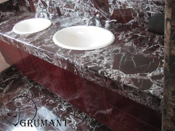 Стільниці з мармуру Чудові мармурові стільниці для ванни зрадять особливий шарм ванній кімнаті, зробивши її одним з найулюбленіших місць в будинку. Стільниці з мармуру та їх оніксу підходять як для прихожих і для ванних кімнат. Для ванних кімнат на додаток до стільницям з каменю пропонуємо використовувати мармурові панелі з цікавими текстурами. Стільниці з каменю в поєднанні з різними видами матеріалів: скло, дерево, метал, створять неповторний інтер'єр ваших аппортаментов.