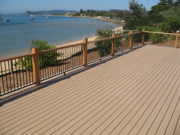 Террасная доска из древесно-полимерного композита состоит из: 60 % - древесной муки; 30% - термопластичный полимер; 10% - комплекс специальных химических добавок для улучшения технических свойств материала. Террасная доска из древесно-полимерного композита обладает рядом положительных свойств: - устойчива к температурам от -50 до 50 С; - устойчива к осадкам (снег, дождь, град); - высокая степень влагостойкости; - высокая степень огнестойкости; - долговечность – срок эксплуатации свыше 20 лет; - заводская гарантия – 5-10 лет; - не требует специального ухода и ежегодной обработки как дерево; - не подвержена гниению, образованию плесени, грибка; - не изменяет своих внешних данных в процессе эксплуатации (не выгорает, не чернеет, не трескается); - изготовлена из безопасных экологически чистых компонентов;