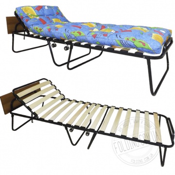 Кровать-тумба «Микс 70» с регулируемым подголовником (ширина спального места 72 см.) Отличительной особенностью данной модели является возможность регулировки подголовника на 4 положения. Каркас раскладушки Микс 70» представляет собой комбинацию из труб круглого и квадратного сечения с толщиной стенки 0,8 см. Это придаёт каркасу более высокую прочность и устойчивость для всей конструкции в целом. У изголовья фиксируется быльце из ламинированного ДСП, которое служит ограничителем для матраса и подушки когда вы спите. Для этих же целей кровать имеет металлический ограничитель в подножной части. В сложенном состоянии кровати быльце распологается сверху, тем самым оно может служить в качестве небольшой тумбы. Размер быльца: 75×24×2см. Кровать раскладная «Микс 70» комплектуется ватным матрасом, толщиной 7 см. Габаритные размеры в рабочем положении: Длина – 197 см. Ширина – 72 см. Высота от пола – 41 см (с матрасом). Вес кровати – 14 кг. Максимальная нагрузка: до 130 кг. Доставка по городу - 150 грн. По Украине: Новая почта, Интайм, Деливери.