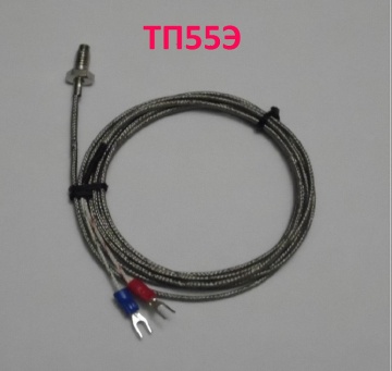Термопары ТП55Э ТХА type K +600 градусов (хромель-алюмель) изготавливаются длиной 5 метров в гибком стеклотканевом экранированном металлическом корпусе, диаметр погружной части 4,5 миллиметров, диаметр экранированной оплетки 3,5 мм, проволока 0,3 мм. Наконечник снабжен штуцером с резьбой М6, который при необходимости можно удалить.