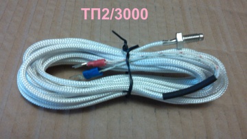 Термопара ТП2/3000, тип ТХА, type K, (К) до +600 градусов, в гибкой стеклотканевой оплётке для измерения температур, с наконечником штуцером, который, при необходимости, можно удалить. Диаметр 2,5 мм, Длина 3 метра.
