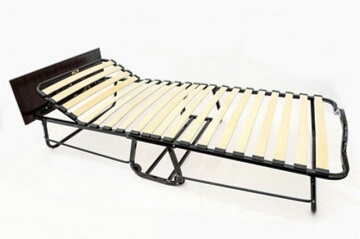 Раскладная кровать - техническое описание: Длина - 200 см. Ширина - 90 см. Высота (от пола) - 33 см. Каркас: Труба профильная 25х25х1.2 мм. (полимерное покрытие). Основание: буковые ламели, (20 шт.) шириной 5,2 см. Матрас натуральный (ватный), 2х90. Максимальная нагрузка - 120 кг. Габариты подголовника: *850*440* На изделии установлен подъемный механизм "МУЛЬТИФЛЕКС" (производства Германии). Имеет 18 положений. Быльца 950Х350х16 мм. (ламинированное ДСП). Размеры в собранном положении: Ширина – 90 см. Высота - 1.05 м. Раскрытие ножек осуществляется автоматически при помощи тяжек. Кровать укомплектована четырьмя колесиками которые обеспечивают удобство перемещения раскладушки по помещению. Толстый матрас обеспечивает полный комфорт. Причем матрас можно использовать отдельно. Матрас для раскладной кровати натуральный (ватный) толщиной 90 мм и обшит натуральной тканью (100% хлопок). Идеальный вариант для домов отдыха, мини-гостиниц, охранных предприятий.