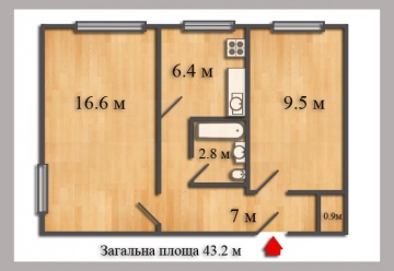 Продається двохкімнатна квартира у місті Збаражі 43,2 м, Тернопіль